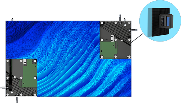 單人維護(hù),模組、接收卡、線材均可從前方維護(hù),減少人力和鋼結(jié)構(gòu)成本。