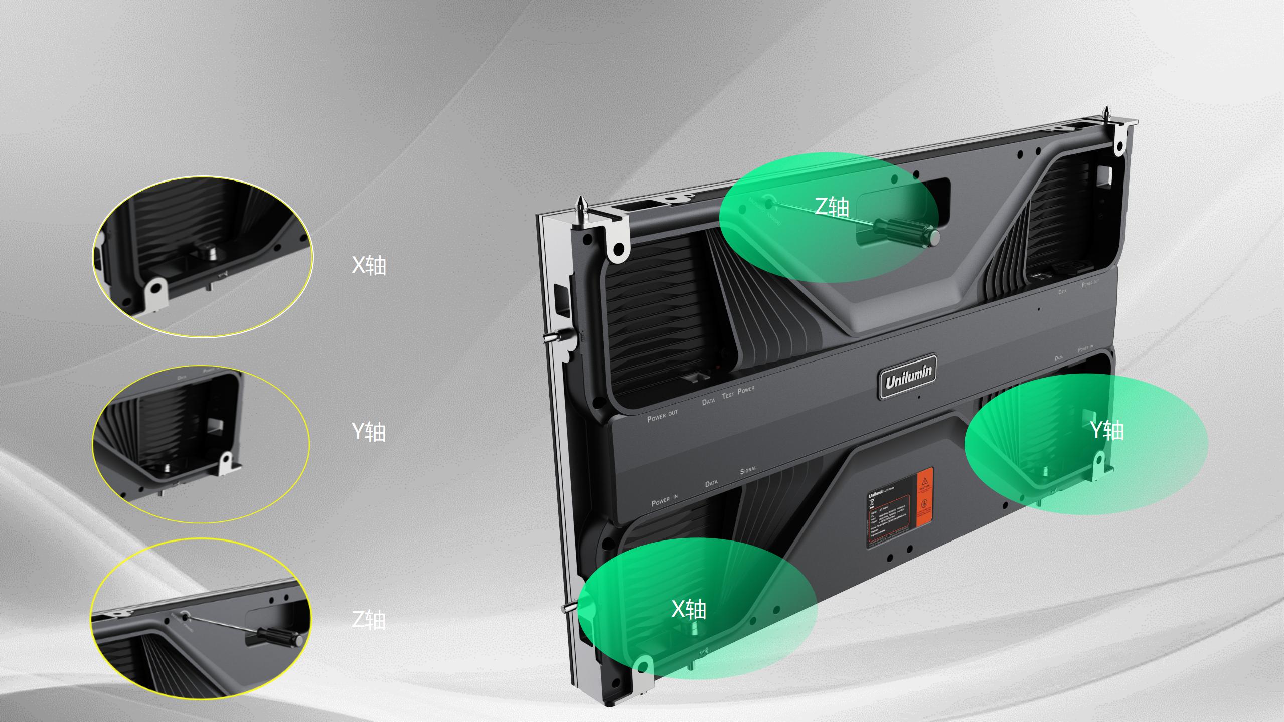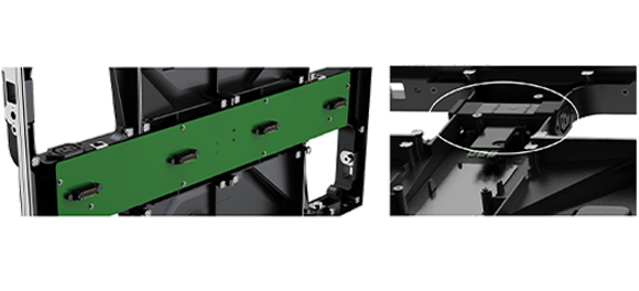 接收卡、HUB卡二合一設計,信號傳輸更穩(wěn)定; 內(nèi)部電源采用注塑一體IEC連接,外部電源直接輸入至箱體電源,內(nèi)部無走線;且支持雙電力輸入,穩(wěn)定性更強; 接觸端子具有保護蓋板,防護力更強;