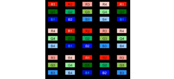 COB封裝,RGB全倒裝芯片應用與虛擬像素的結合,實現間距每縮小一倍,芯片數量不增加,像素點數增加4倍。